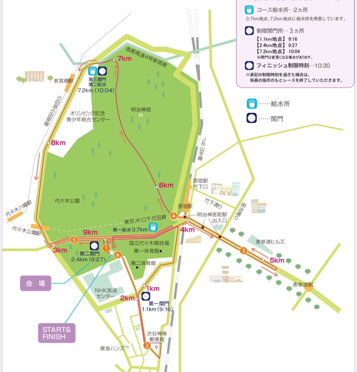 08:20-08:30 スタート地点付近(NHKホール入口前)集合