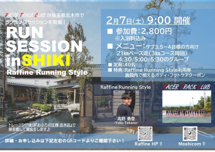 ・雨天決行※悪天候(台風や降雪などによる警報、公共交通機関への障害など)によるイベント中止や内容の変更についてはラフィネランニングスタイルHP上にてお知らせいたします。