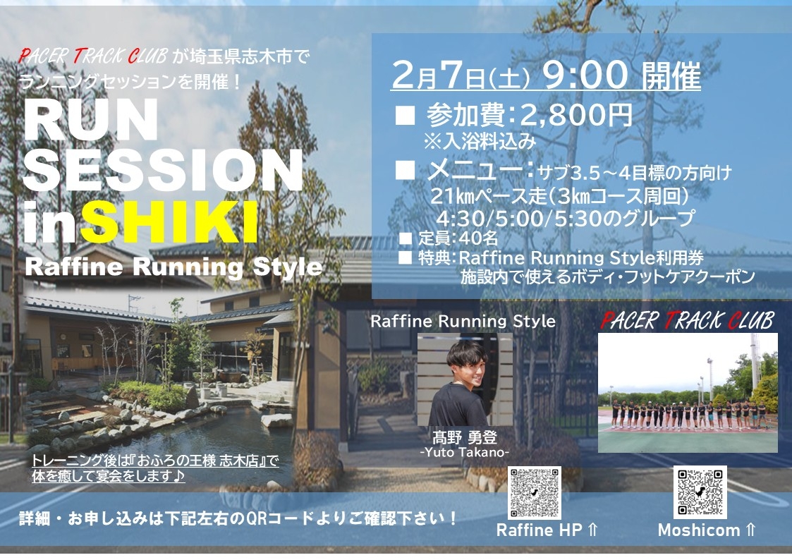 Raffine Running Style恒例のお風呂ランとPACER TRACK CLUBのトレーニングがタッグを組みました!施設近隣の秋ヶ瀬公園で走り込んだ後は、お風呂に浸かって疲れを癒し、宴会も楽しみましょう!
