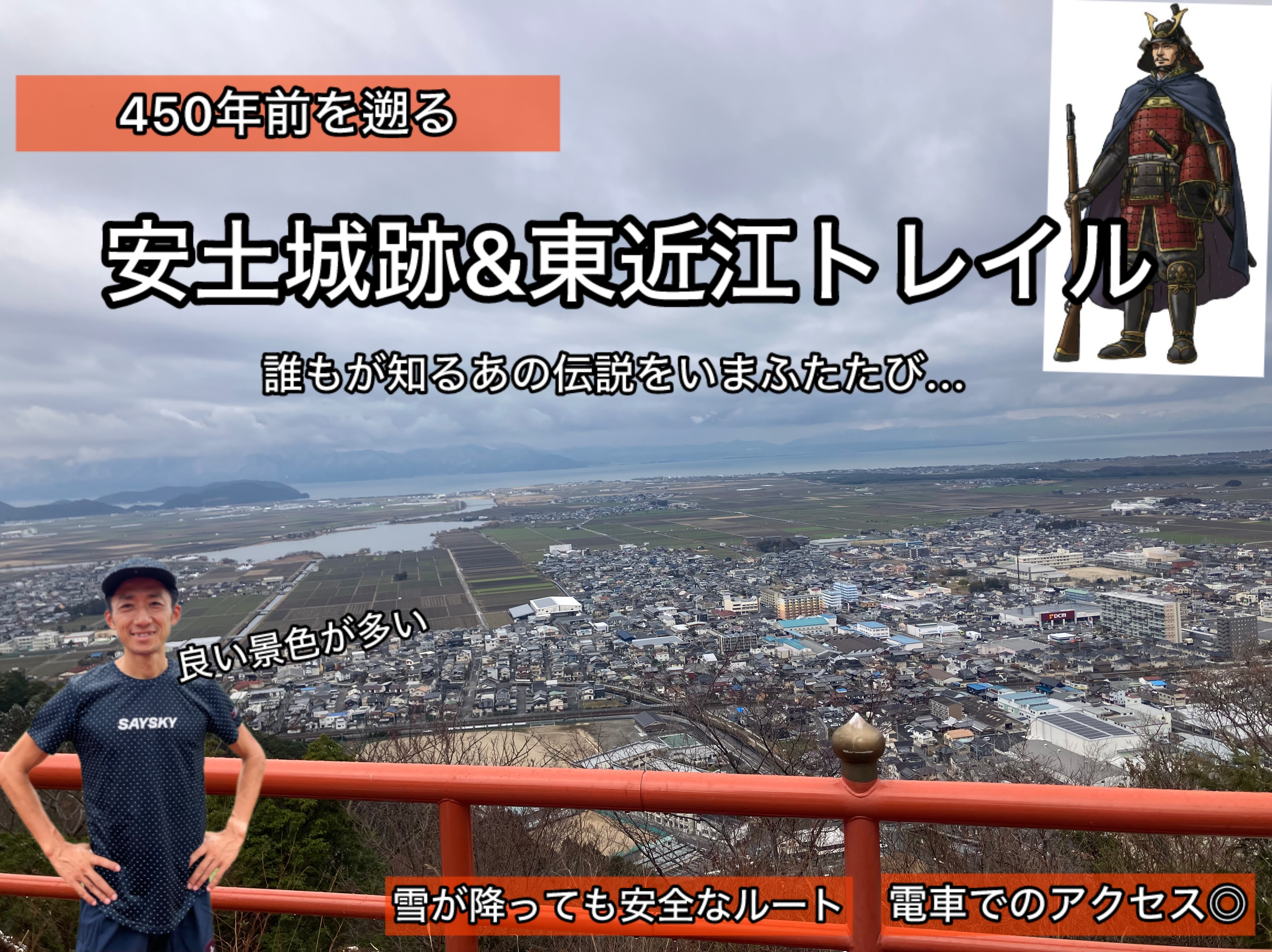 織田信長という武将、ご存知でしょうか?今回は誰もが知る戦国の武将信長公が築いた安土城界隈をトレイルしながら歴史を学びます。恐らく450年前の安土桃山時代、安土の民(たみ)も見ていたであろう山からの田園・ びわこの景色を眺め、安土城跡にもlet's GO