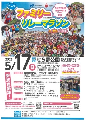 リレーマラソンの定員は先着120チーム。親子の部定員は50組となっております。