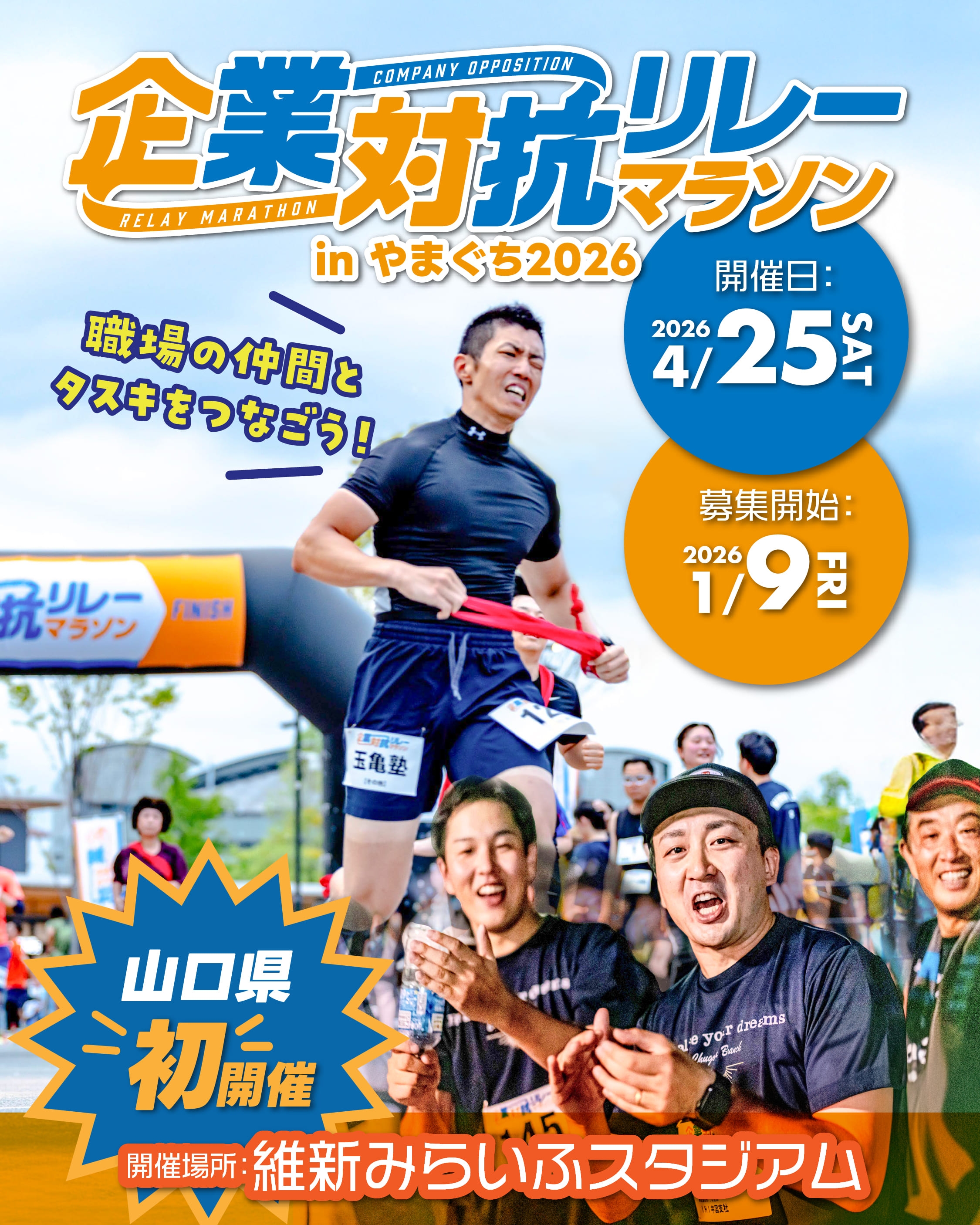 4月25日(土)に維新みらいふスタジアム内特設周回コース (1周約1,000m)を走る3時間耐久リレーマラソンを山口県で初開催!