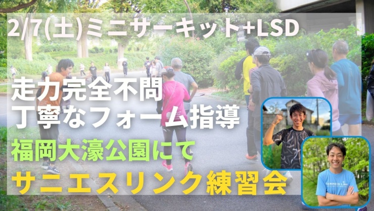 関東ですでに実績のある走力完全不問のランニングクラブ、サニエスリンクです。安心の練習システム、身体の仕組みをうまく使った専門的なストレッチやエクササイズ、丁寧なフォーム指導に定評があります。今まで関東エリアをメインに練習会を運営していましたが、2025年9月より、福岡市大濠公園でも練習会を新規スタートしました!ぜひご参加ください!