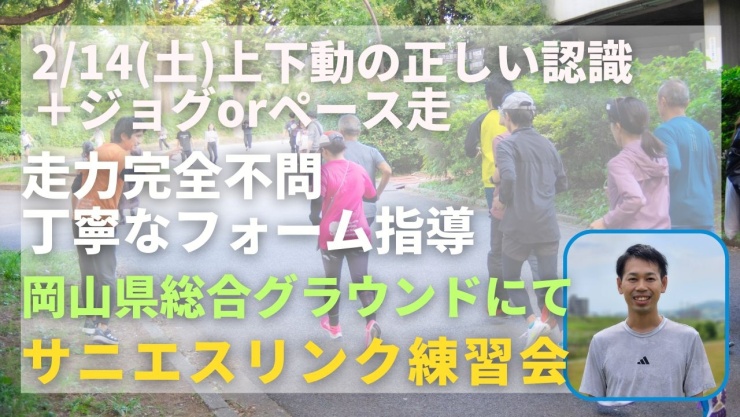 関東ですでに実績のある走力完全不問のランニングクラブ、サニエスリンクです。安心の練習システム、身体の仕組みをうまく使った専門的なストレッチやエクササイズ、丁寧なフォーム指導に定評があります。今まで関東エリアをメインに練習会を運営していましたが、2025年9月より、岡山県総合グラウンドでも練習会を新規スタートしました!ぜひご参加ください!