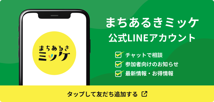 - メールの場合は<info@machiarukimikke.com>まで