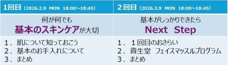 そして2月から前半2回・後半2回の全4回シーリズで、元・資生堂スタッフによるビューティー講座も同時開催!!!!