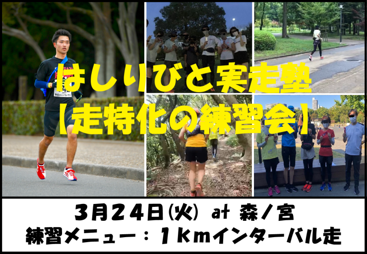 - 学生(高校生以下):3/24【森ノ宮/火曜ナイト】はしりびと実走塾『1kmインターバル走』 :