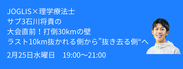 2月25日水曜日「第9回 JOGLIS×理学療法士 大会直前!打倒30kmの壁
