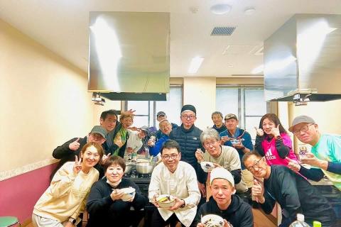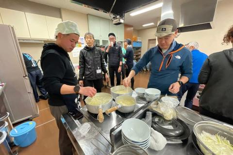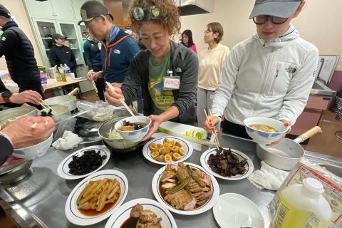 ●途中、給水とお菓子を用意してます。ゴールの地区センター調理実習室でラーメンを食べます。