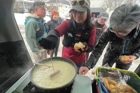 - 当マラニックは参加者みんなでランニングします。途中のエイドでは手作りの給食あり。時にはお手伝い頂くこともありますのでご了承ください。マイカップ持参して頂けると大変ありがたいです