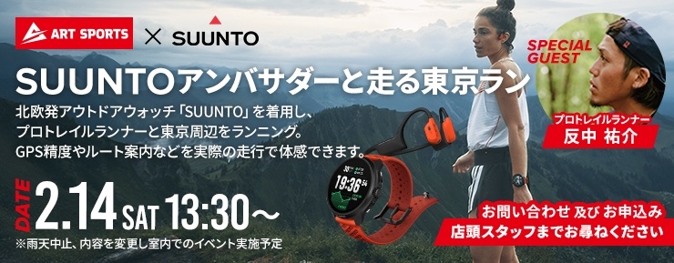 今回のイベントでは、北欧発のアウトドアウォッチブランドSuunto(スント)の最新モデルを実際に着用し、プロトレイルランナーと一緒に上野・御徒町駅周辺をランニング。SuuntoウォッチのGPS精度、ルートナビゲーション、リアルタイムデータ表示などを、リアルなランニングシーンで体感いただけます。途中ではプロランナーによるフォームチェックやトレイルの基礎テクニックのミニレクチャーもあり、これからトレイルランニングを始めたい方にも最適、普段の街ランとはひと味違う「ギア体験×実走」をぜひご一緒に。