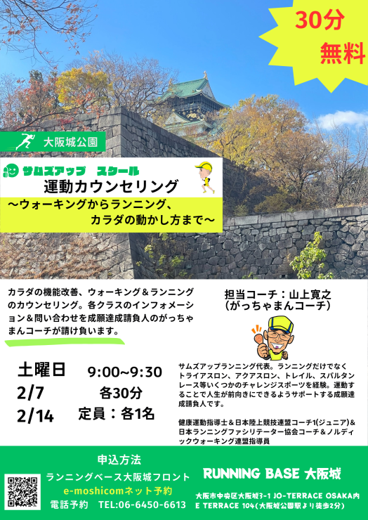 【無料】2月14日(土) 運動(ウォーキングからランニング、カラダの動かし方まで)カウンセリング 受付中