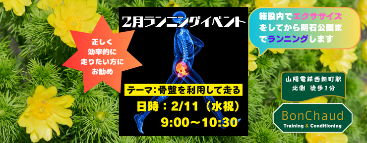 明石の山陽電鉄西新町駅前にあるパーソナルトレーニングジムBonChaud(ボンショウ)が主催するランニングイベントです。