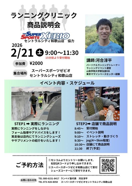 スーパースポーツゼビオセントラルシティ和歌山店協力のもと、ランニングクリニック&商品説明会を開催します!