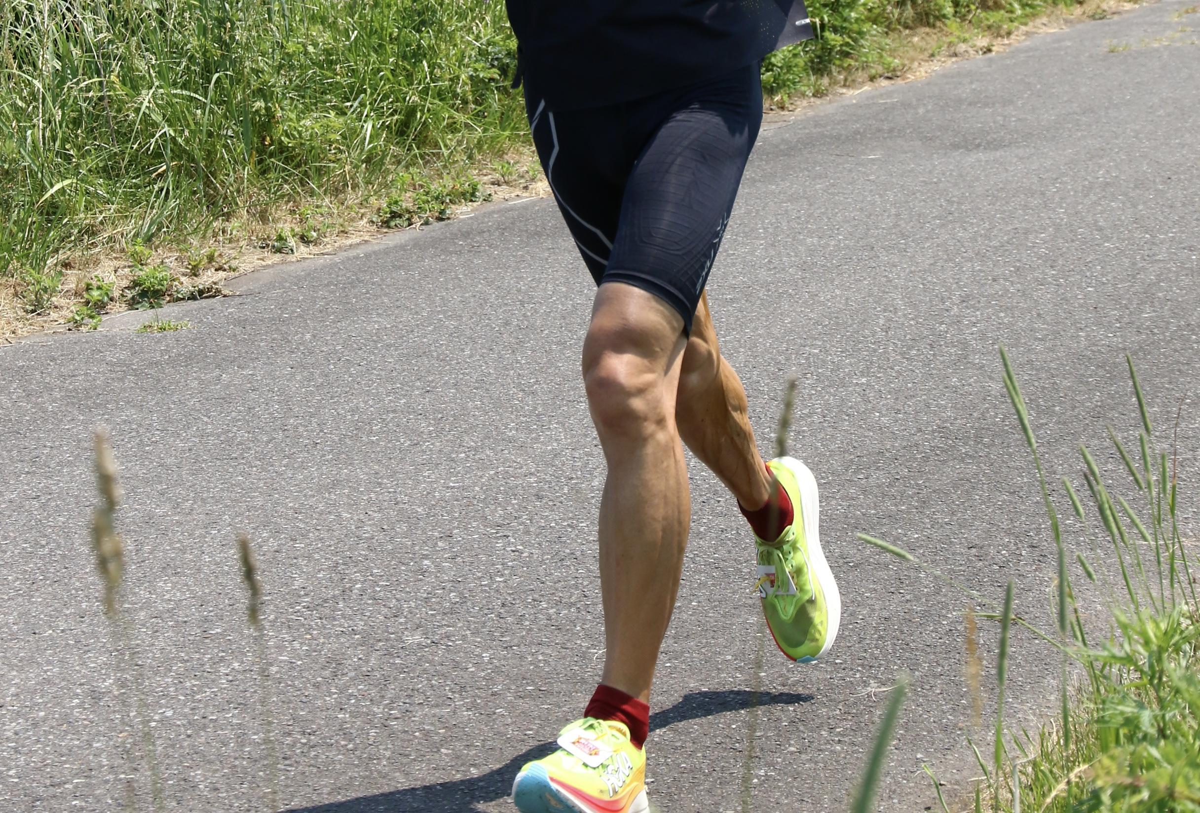 途中対岸側の歩道を走り、24時間走のレースを見ながら、実際にランニング。