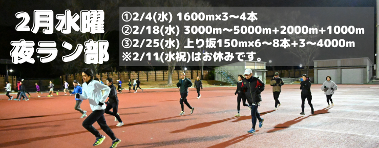 - 2/18(水) 3000m~5000m+2000m+1000m :
