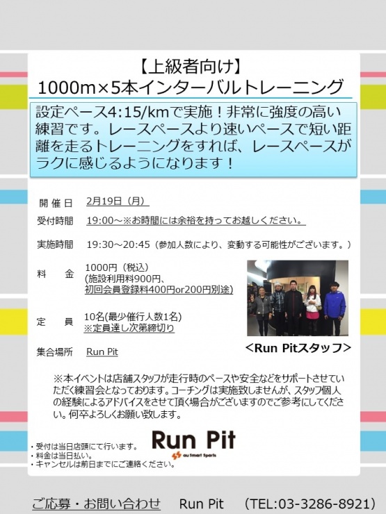 【上級者向け】1000m×5本インターバルトレーニング 受付終了
