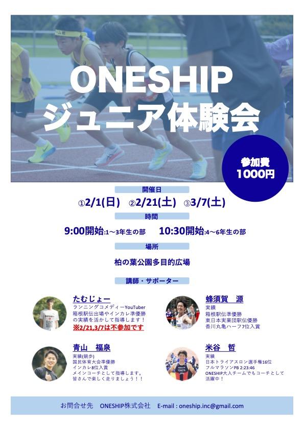 ONESHIPジュニアランニング体験会|小1〜6|初心者OK・レベル別指導 in柏の葉公園 受付中