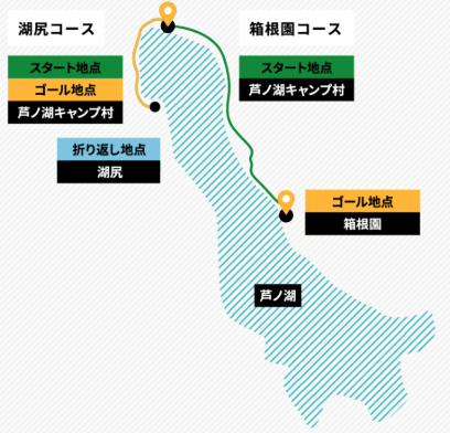09:45 ルール説明 10:00芦ノ湖キャンプ村スタート