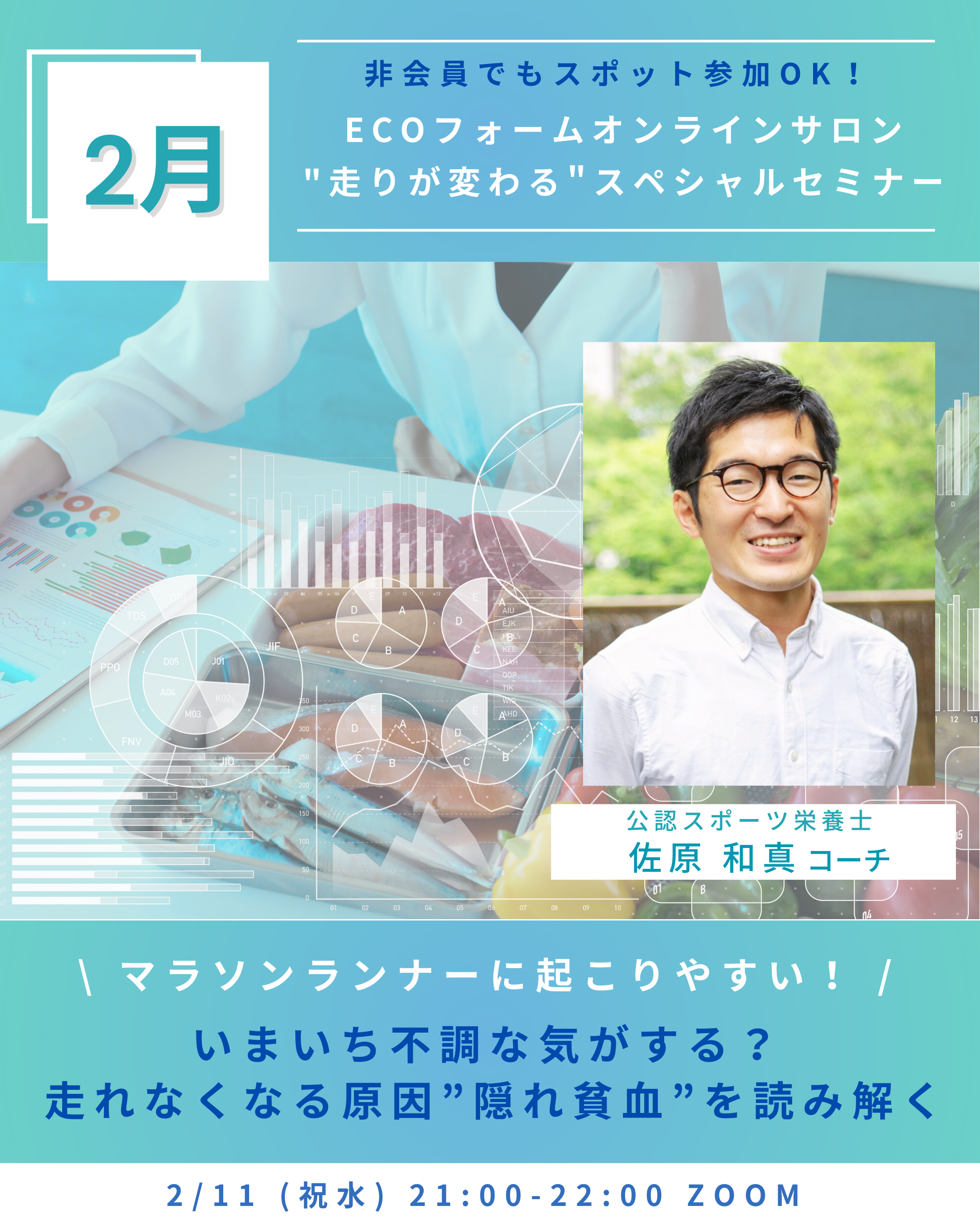 2月"走りが変わる"スペシャルセミナー『隠れ貧血と栄養戦略』〜ECOフォームオンラインサロン 受付中