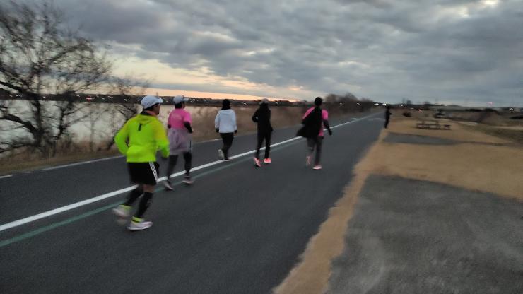 - 準備体操後、状況に応じた距離のラン(手賀沼の周遊コースを走ります)