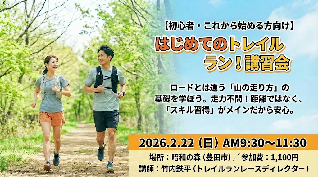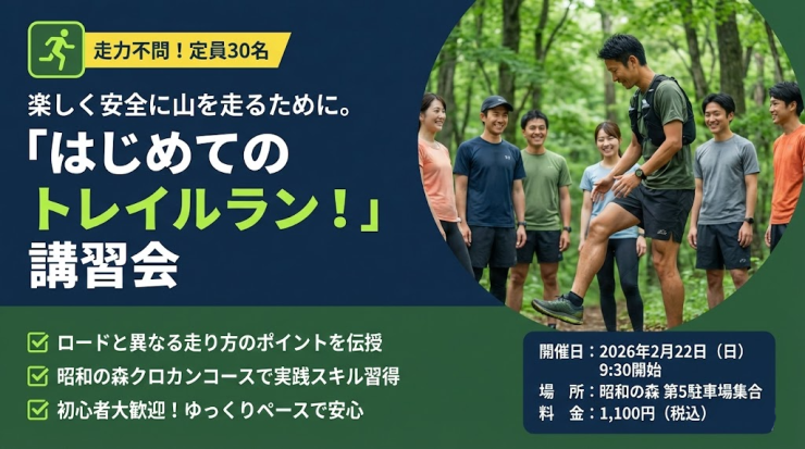 そんな疑問や不安をお持ちの方へ。2026年2月22日(日)、トレイルランビギナー向けの講習会「はじめてのトレイルラン!」を開催します。
