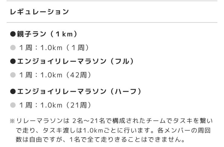 - ランニング(種目:フル、ハーフ、30km走、ウルトラ、駅伝・リレー、親子・キッズ、その他)