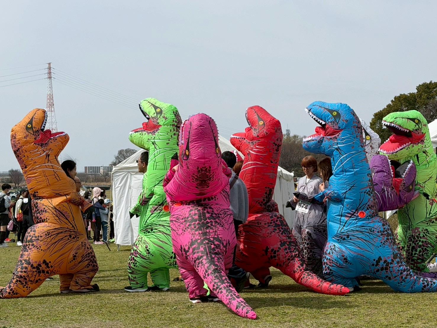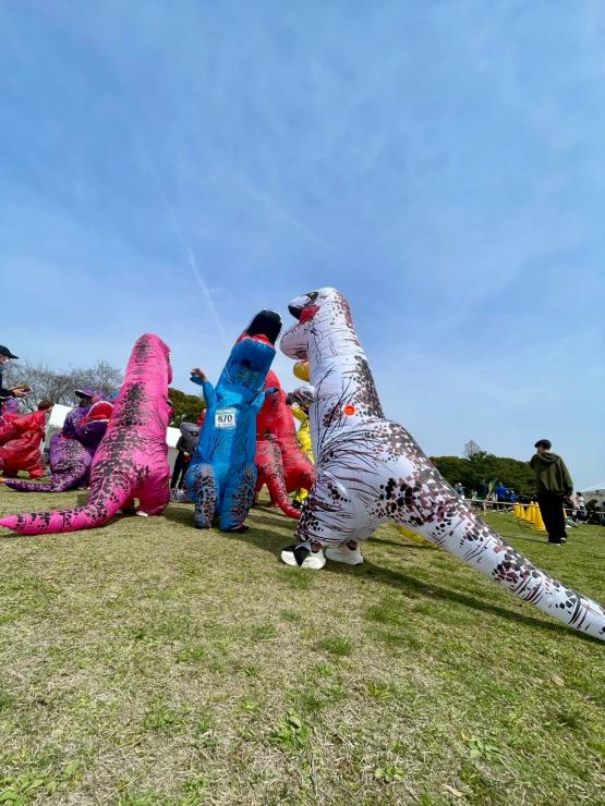 恐竜ランナー集まれ~(^^)/ 恐竜の着ぐるみを着て、500mを走るレースです。ぜひ一風変わったRUNイベントにご参加ください。SNSネタとしても最適☆