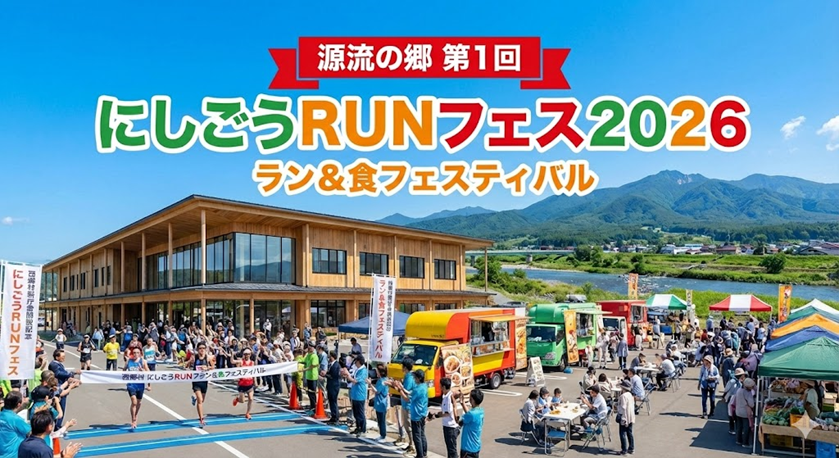 西郷村新庁舎の開設を記念し、村外からの交流人口拡大と村民の健康増進を目指す、ランニングと「食」のフェスティバル。新庁舎を発着点とし、レース後にはキッチンカーなどの飲食イベントも楽しめます。