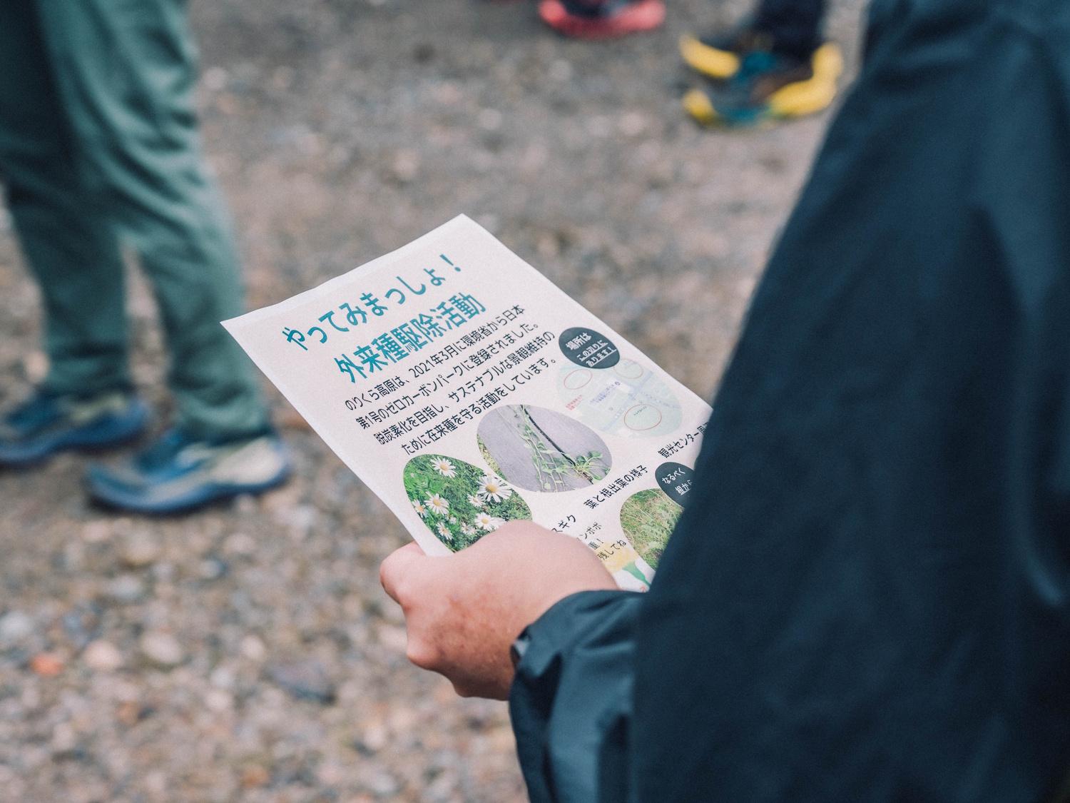 のりくらロゲイニングでは、フィールドとして使わせていただくトレイルを守り、次世代に繋げるために、環境整備活動=外来種植物駆除 および 整備協力金(参加費に含む) による参加者のみなさまのトレイル維持へのご協力をお願いしています。