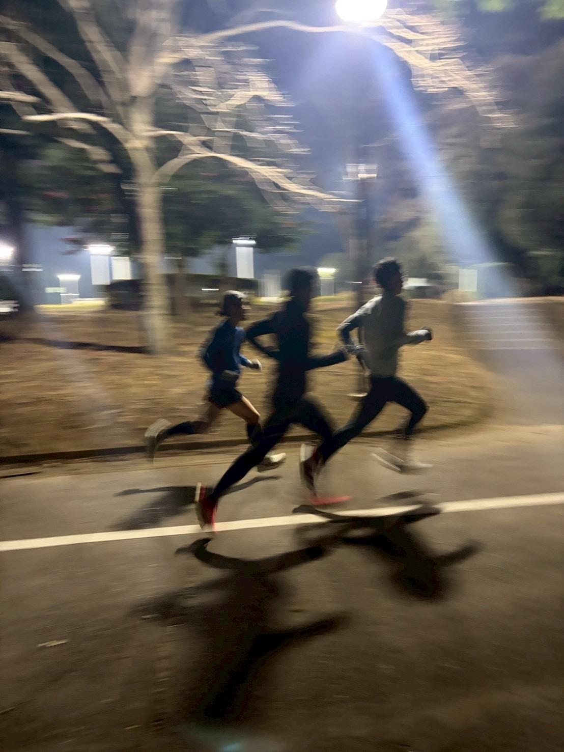 ◎走れる服装、ロード用シューズ、ヘッドライト、水分など
