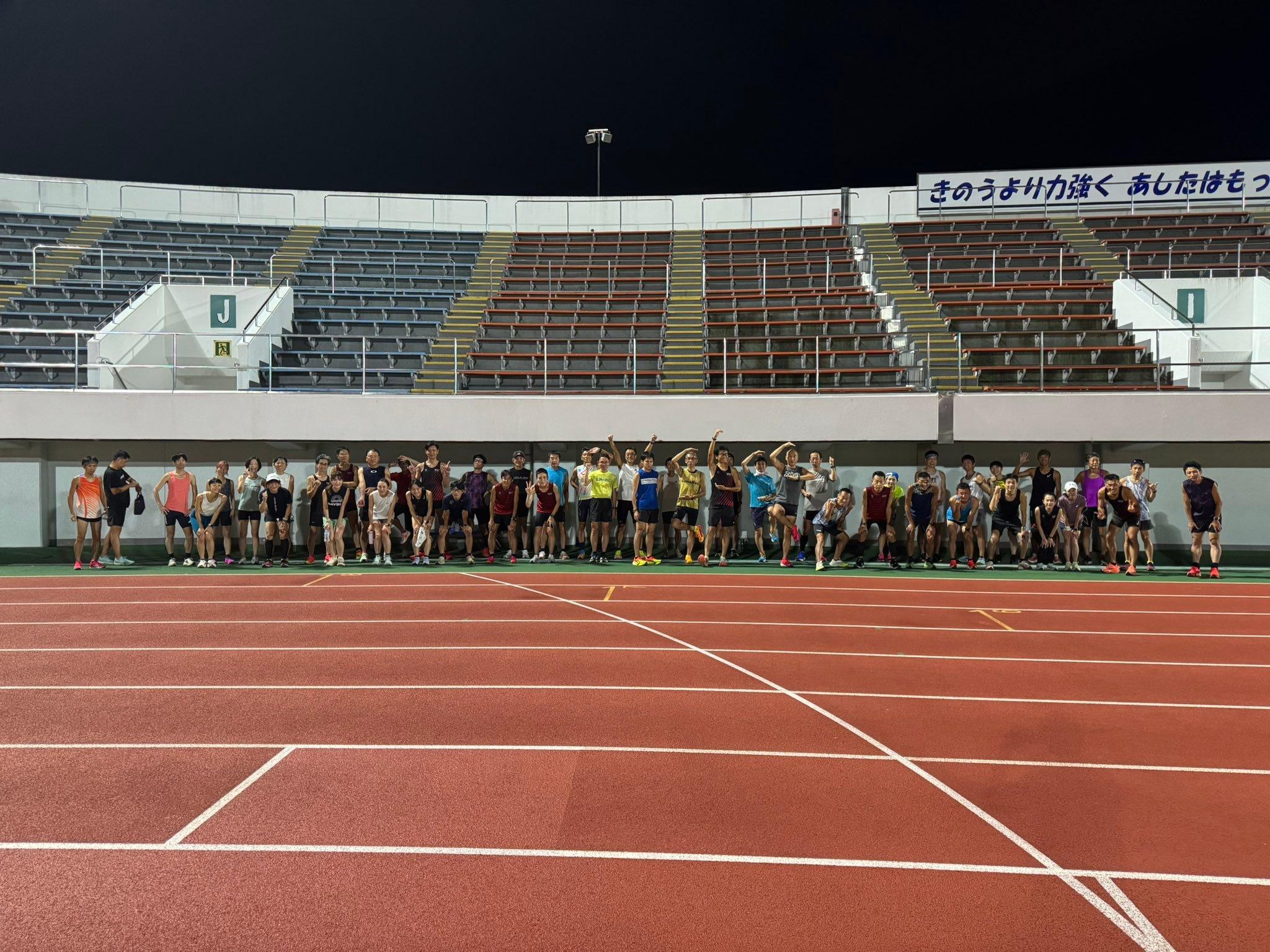 18:30-19:20 江戸川陸上競技場(すぴあーずえどりく) 集合し各自ウォーミングアップ、スタートできるように着替え