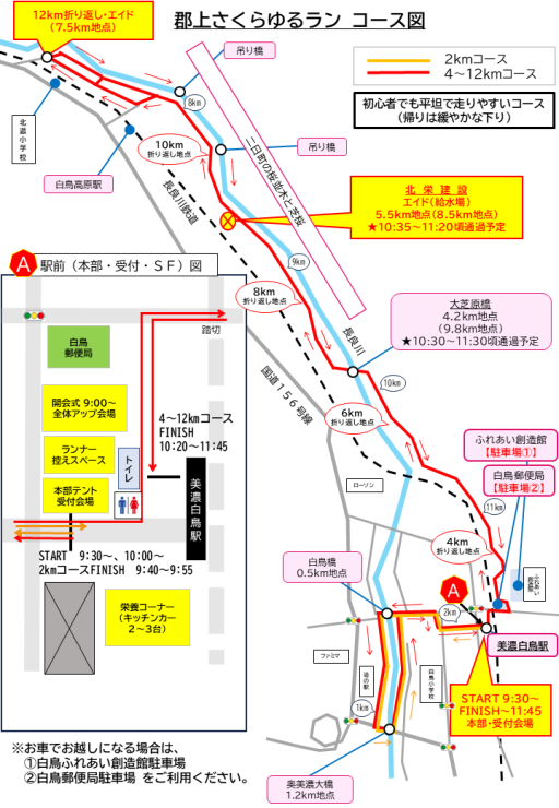 ②4~12kmの部:美濃白鳥駅前スタート・フィニッシュ~二日町の桜並木折り返しコース