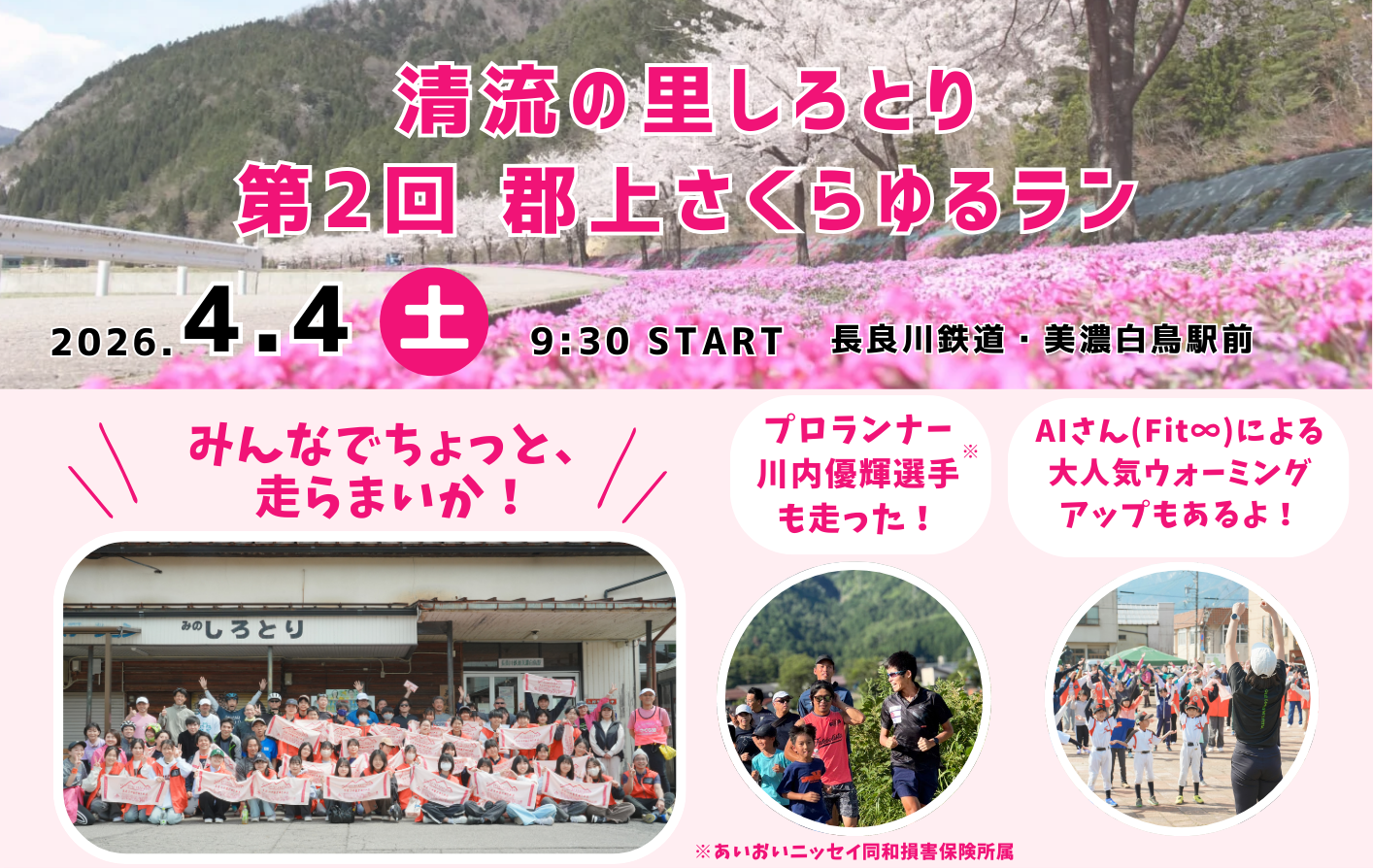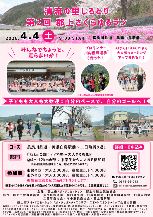 清流長良川沿いと桜並木を走る「郡上さくらゆるラン」イベントを4月4日(土)に開催します!