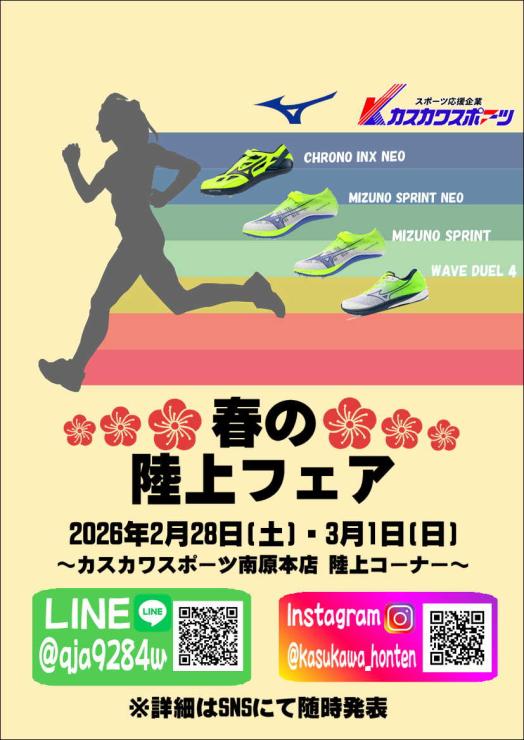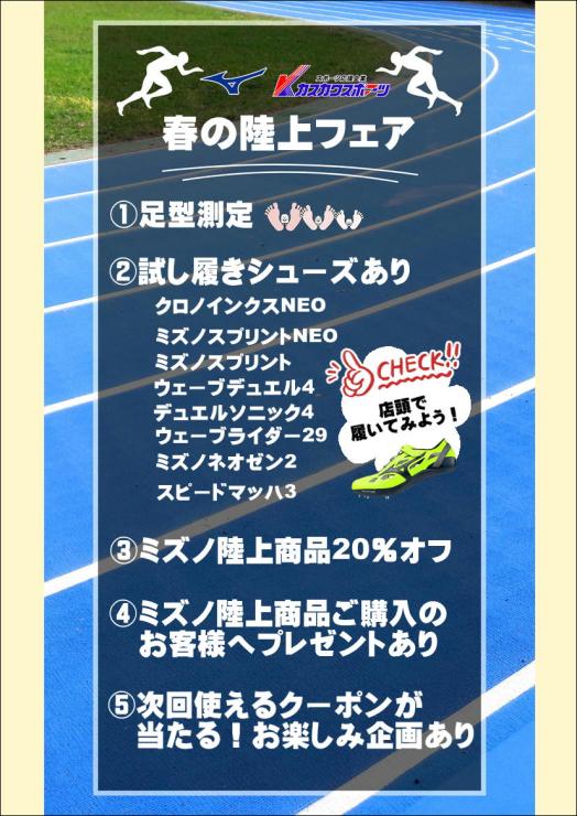毎年恒例!ミズノ×カスカワスポーツ春の陸上フェアを開催します!