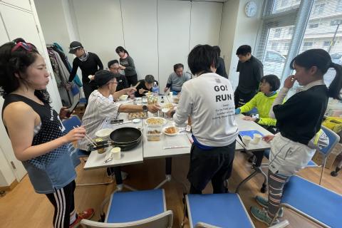 もういよいよ、ゴールにラーメン&餃子なんて無理だろうと想定し、餃子と春雨スープに変更しまーすなんてアナウンスしたら、ラーメンを食べる頭は皆から覆らないようで笑。ラーメンと餃子を作って腹パンパンのゴールとなりました♪