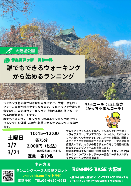 3月7日(土)誰でもできるウォーキングから始めるランニング 受付中