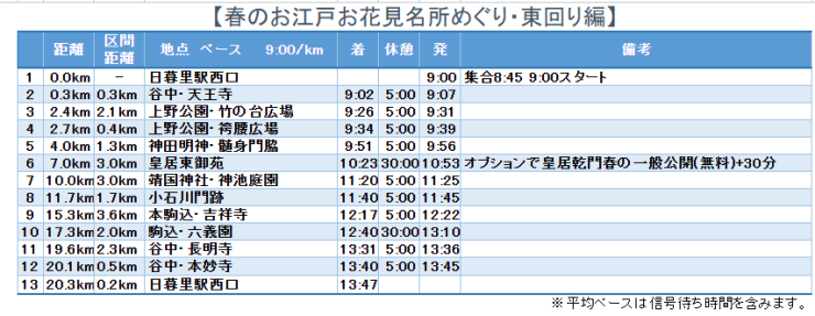 集合:日暮里駅西口 集合8:45 スタート9:00