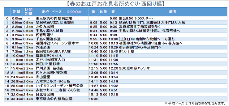 春のお江戸お花見ラン(西回り)コース