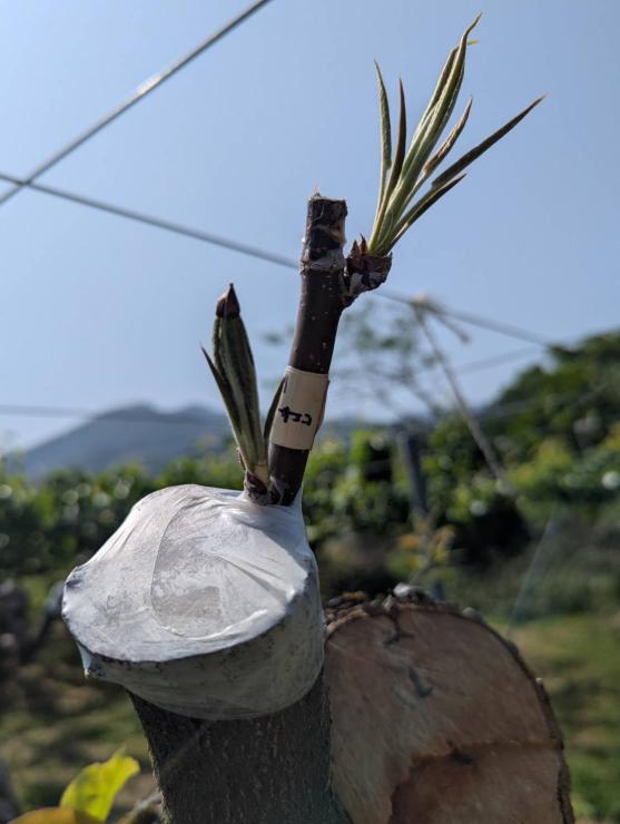 ゴール後に八東フルーツ観光園で接ぎ木体験と山菜の天ぷら体験を楽しんでいただきます。