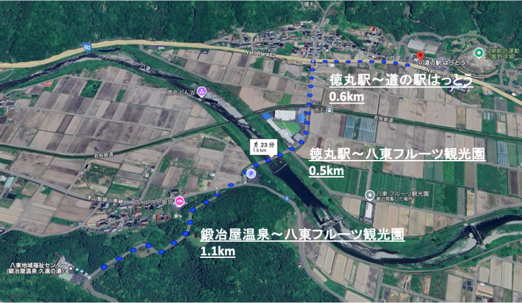 ※道の駅はっとうから八東フルーツ観光園、鍛冶屋温泉までは車での移動も可能です。