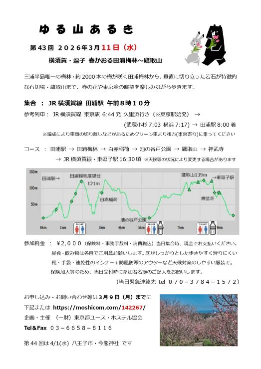 ゆる山あるき 田浦梅林 受付中