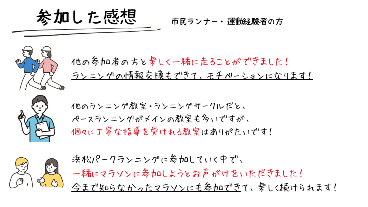 浜松市内にて、ランニング初心者の方、市民ランナーの方向けに開催しているランニング教室です!