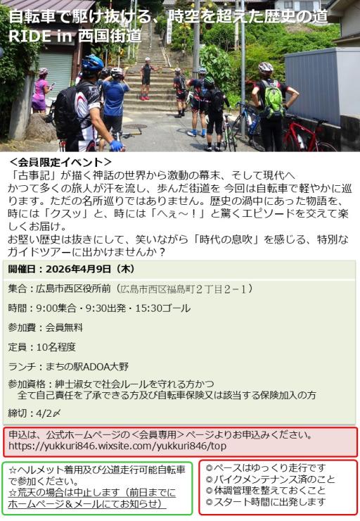 - ゆっくり走ろうロードバイク広島(担当:堀 啓二)