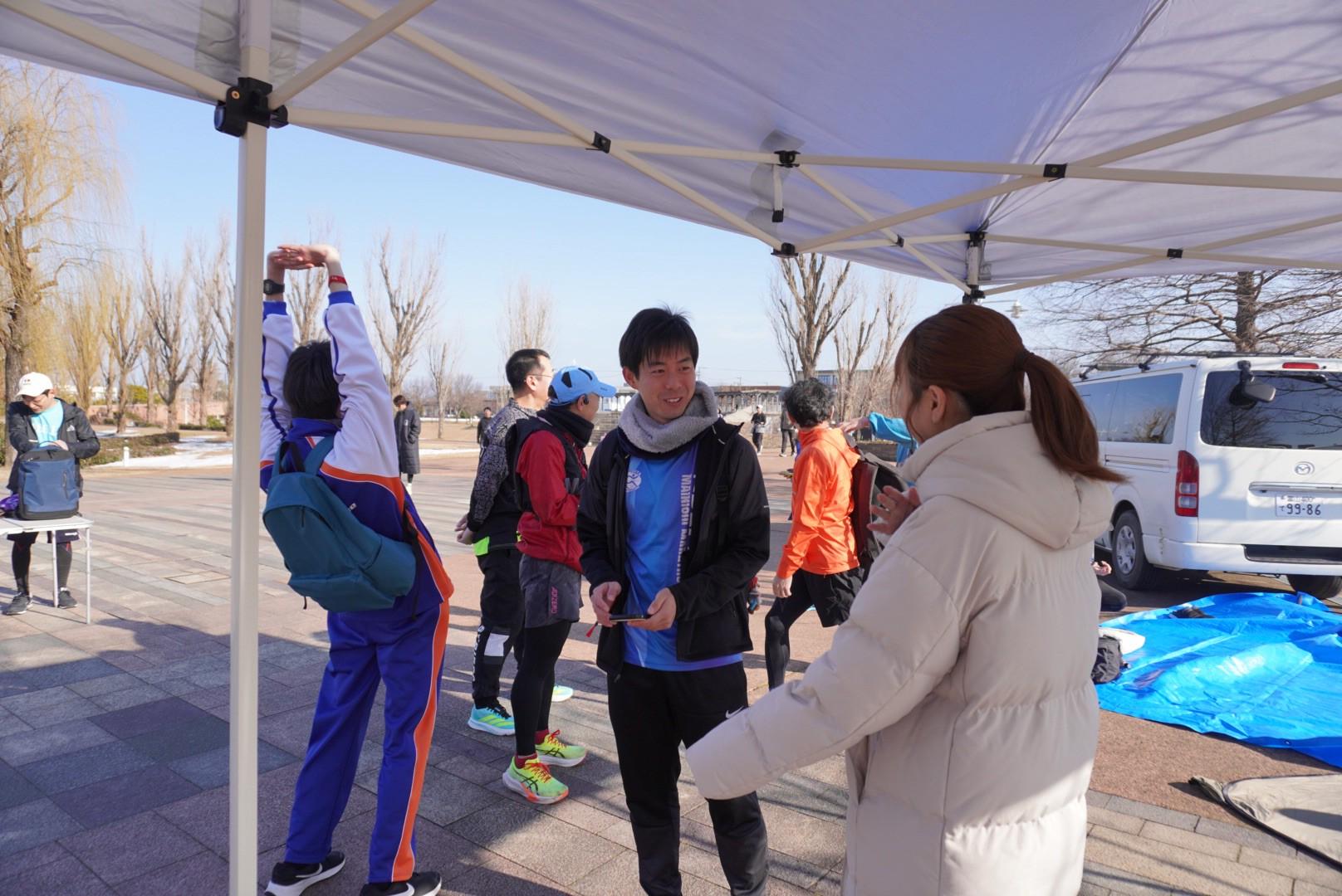 - タイムテーブル(案) 08:30 受付開始(音楽BGM/撮影スタート) 08:45 開会あいさつ・注意事項(コース/安全/ペース枠説明) 09:00 トークショー(フォーム・回復・補給) 09:30 記念撮影 09:30 ウォームアップ/動きづくり(ドリル) 09:30 ペース走 開始(各ペース順次スタート/最大30km枠含む) 13:00 ペース走 終了目安(クールダウン・集合導線) 13:00 給食(とろけるプリン/イベント限定 特製カツサンド配布) 13:30 ゲストトーク(磯野あずさ)/抽選・告知(任意) 13:50 クロージング 14:00 終了