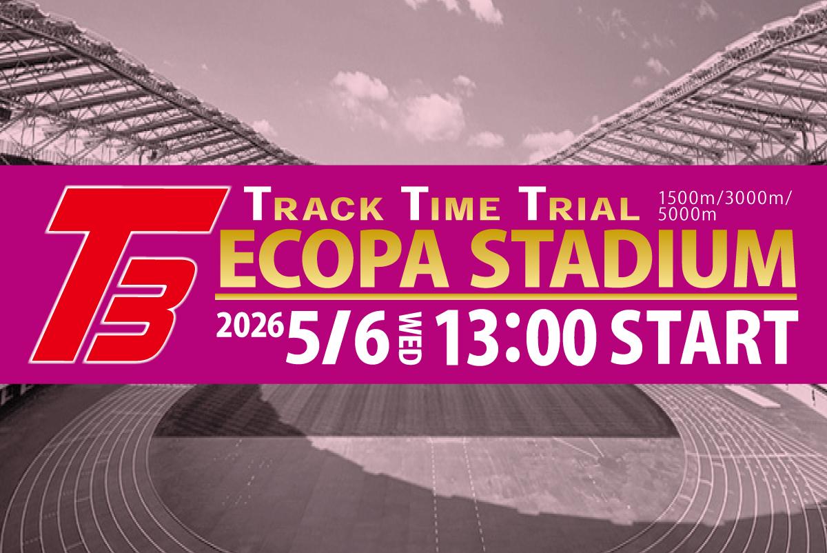 5/6(祝・水) 小笠山の豊かな自然につつまれた、緑あふれるエコパスタジアム内で、T3〈Track Time Trial〉を開催!種目は5000m・3000m・1500m。5000mにはペーサーが付きます!午前中は、見晴らしの丘一帯までをコースとした『第3回SHIZUOKA RUNNERS TRIAL』を開催(お申し込みは別ページ)充実のRUNイベントをぜひお楽しみください!!