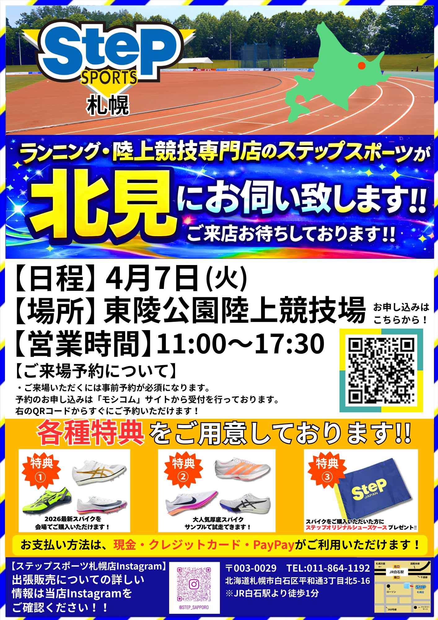 北見出張販売 (ステップスポーツ札幌) 受付中