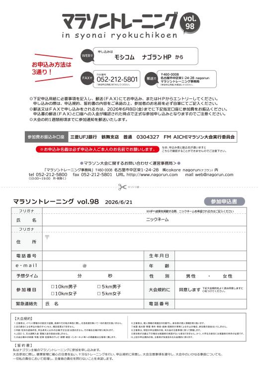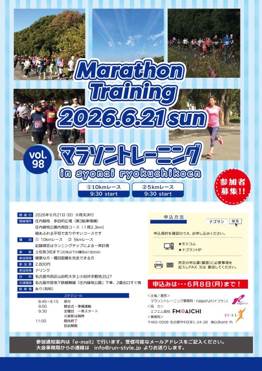 2026/6/21(日)「マラトレ vol.98」庄内緑地で開催!
