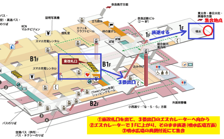 近鉄奈良駅:噴水広場横付近にて集合