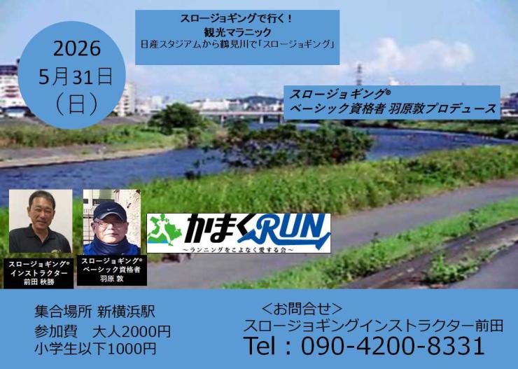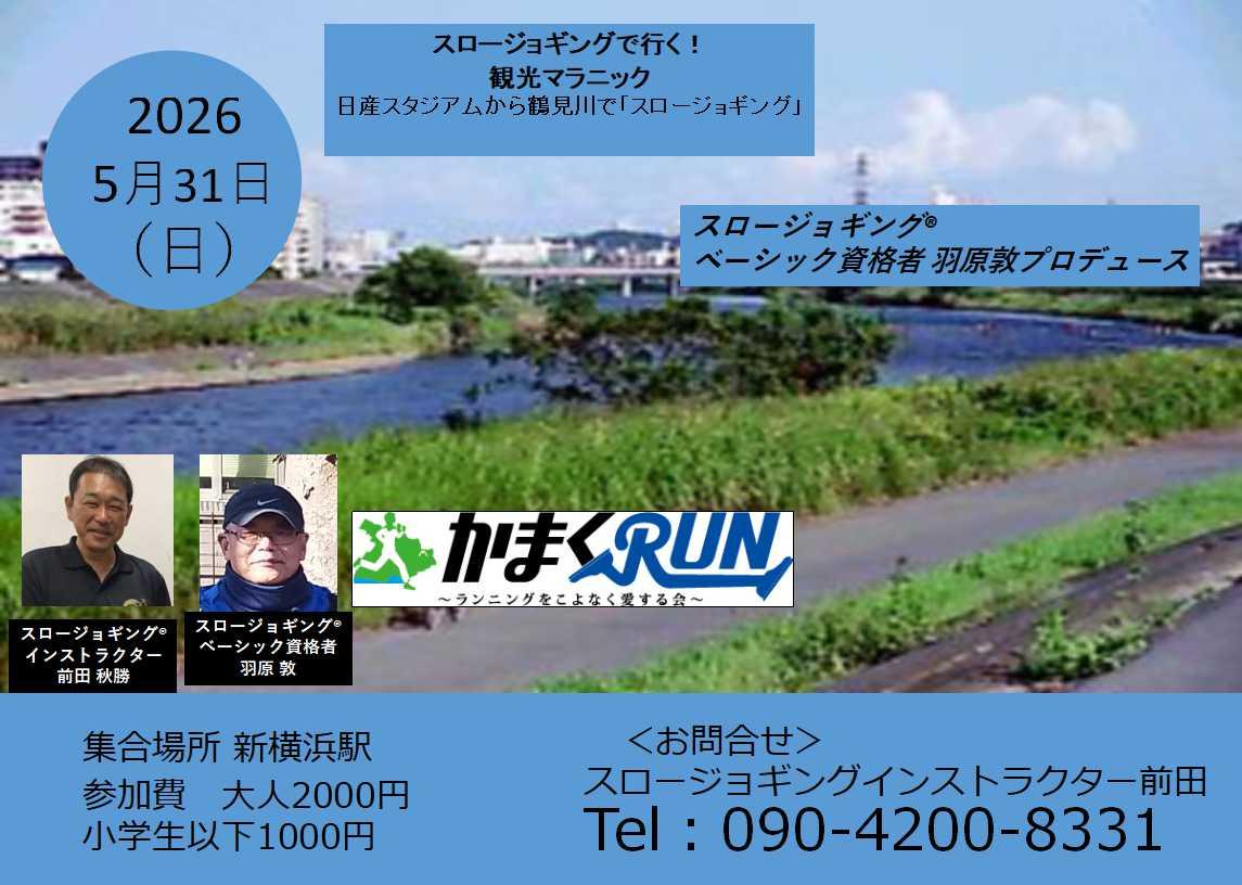 コースは日産スタジアムから鶴見川を約6㎞程度、1分ジョグ30秒ウォークします。
